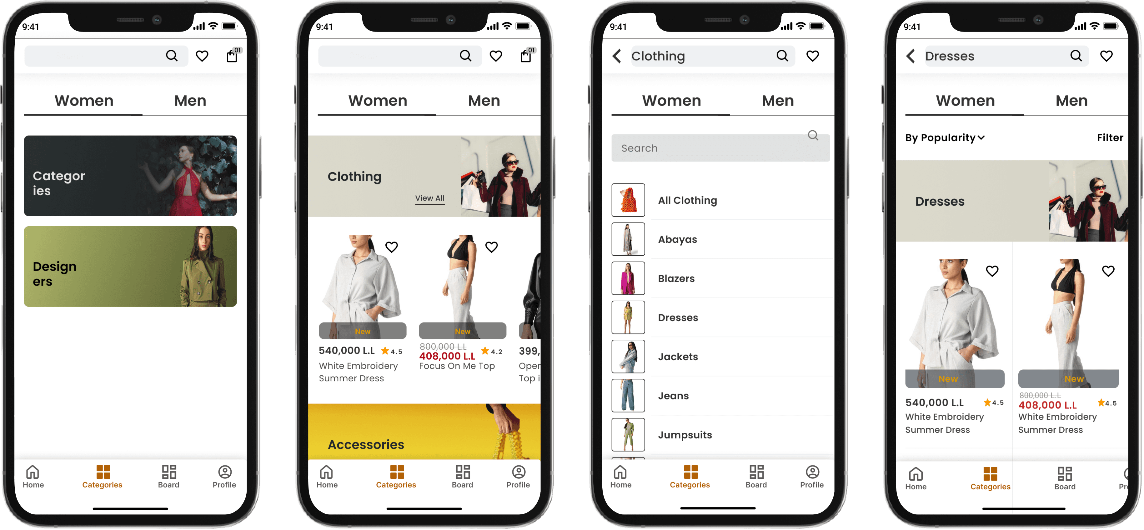 Users were not sure about what exactly to expect after pressing on the categories option since most of them thought it would directly take them to the clothing options and didn’t know we had options for accessories, shoes, and so on.