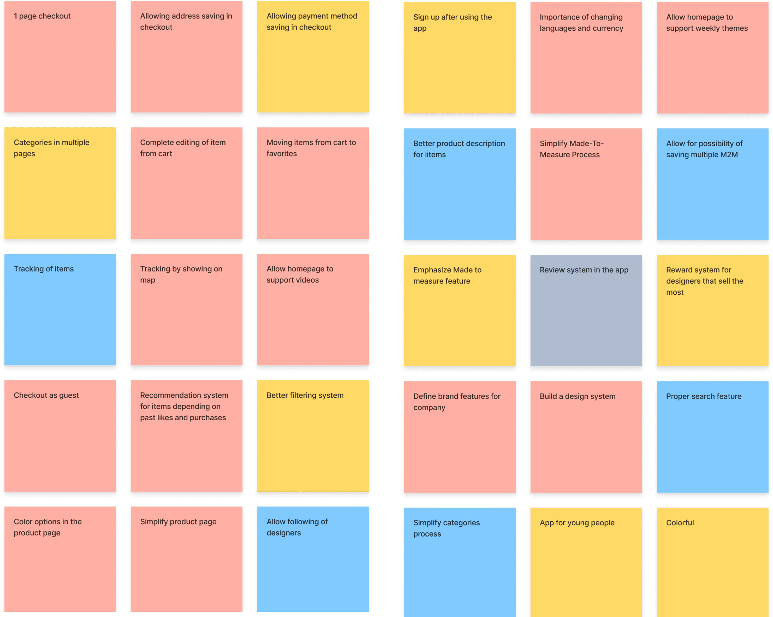 This exercise was performed to define the features that will be in the MVP and which will be left for later updates.