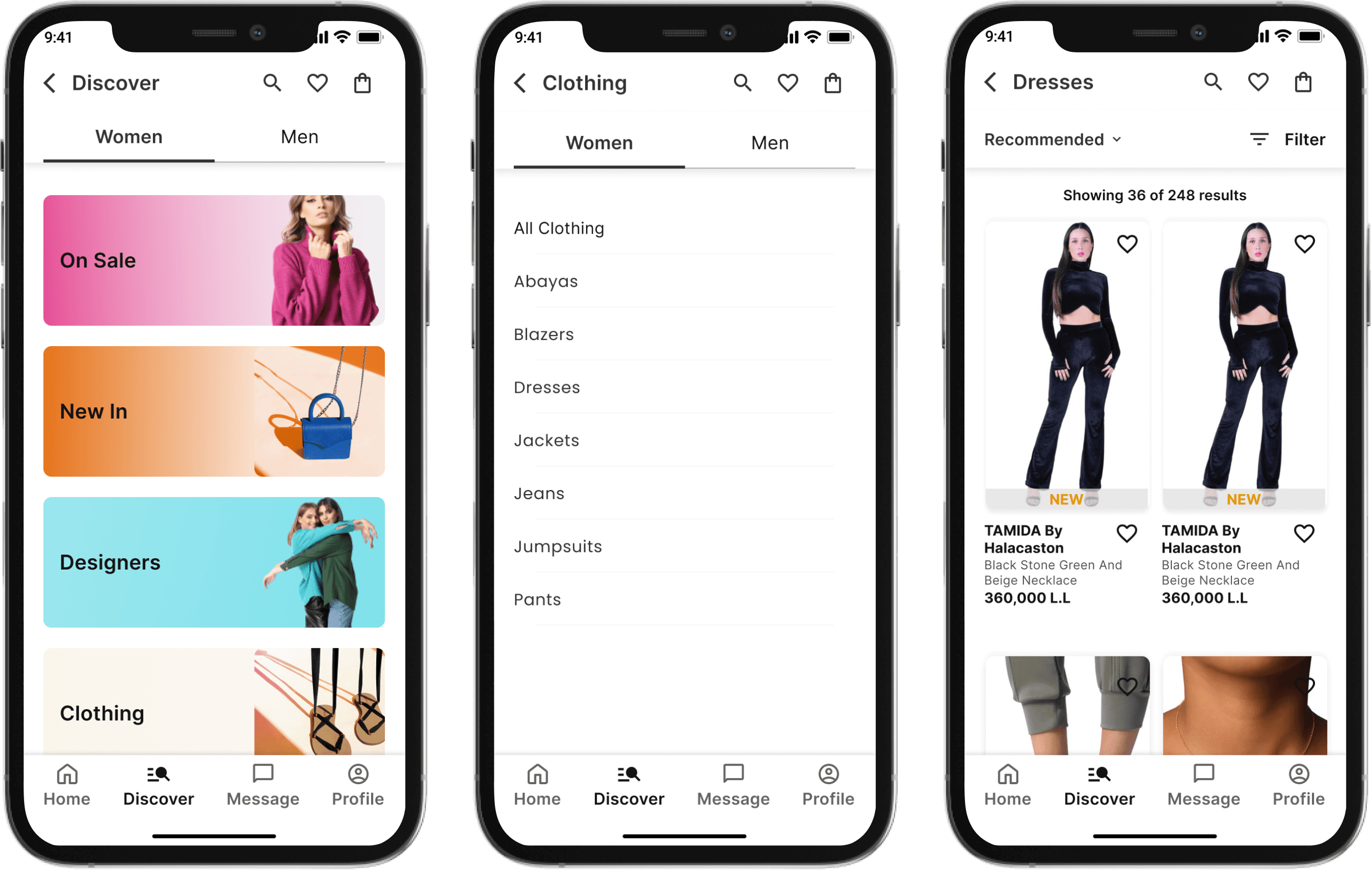 Moving the Designers and Categories option into the Discover page and adding a “New In” and other options since would allow the users to know the full scope of what we offer.